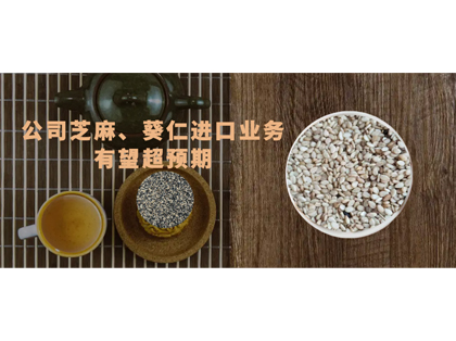 近年來我司積極深耕農產品進口業務,其中進口芝麻、葵仁業務快速發展,今年1-8月芝麻進口量是去年同期的158%,公司進口芝麻具有品質優、價格相對低廉的特點,產地為蘇丹、埃塞、莫桑等國家。